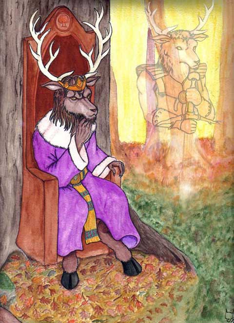 "Tallek Remembering" is the second winner of the 2008 Fan Art Contest and was created by one of our forum members Gaël Orliange (aka Light Wolf). Tallek is the name of the current Forest King in the manual from the New World Computing release of Inherit the Earth: Quest for the Orb. Although the character names given on that page of the manual is not "canon," there is nothing in the game or comic strip to contradict that name. Artist: Gaël Orliange